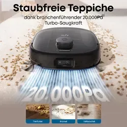 Staubfreie Teppiche dank branchenführender 20.000Pa Turbo-Saugkraft: Das ideale Gerät für Haushalte mit Vierbeinern. Der E25 sorgt für Tiefenreinigung in Profi-Qualität auf Teppichen und Hartböden. Selbst tiefsitzender Staub und Tierhaare werden effektiv entfernt – für ein rundum makelloses Zuhause.