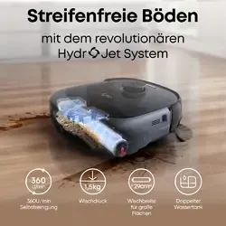 Streifenfreie Böden mit dem revolutionären HydroJet System: Sag klebrigem Saft oder verschüttetem Müsli den Kampf an – das HydroJet System mit Dual-Rollenreinigern säubert die Wischrolle in Echtzeit und sorgt für eine gleichmäßige Tiefenreinigung – komplett rückstandsfrei.