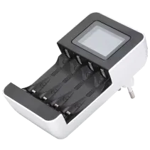 - Batterieladegerät mit LCD-Anzeige zum sicheren und schnellen Laden von bis zu 4 NiMh-Akkus