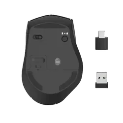 - optische 6-Tasten-Funkmaus mit zwei Empfängern zum wahlweisen Anschluss an USB-A- und USB-C-Ports ,