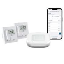 Attraktives Bundle, bestehend aus dem Homematic IP Access Point 2 und 2x Homematic IP Wandthermostat mit Schaltausgang für Markenschalter.