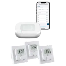 Attraktives Bundle, bestehend aus dem Homematic IP Access Point 2 und 3x Homematic IP Wandthermostat mit Schaltausgang für Markenschalter.