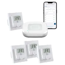 Attraktives Bundle, bestehend aus dem Homematic IP Access Point 2 und 3x Homematic IP Wandthermostat mit Schaltausgang für Markenschalter.