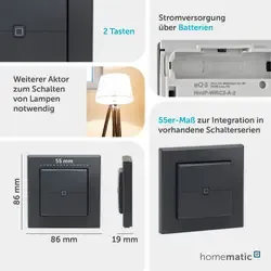 Homematic IP Wandtaster – 2-fach V2 5 cm Anthrazit