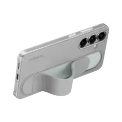 Mit dem Standing Grip Case liegt dein Galaxy S25 / S25+ / S25 Ultra komfortabel und durch das Band zudem sicher in der Hand. Willst du bequem Videos oder Fotos betrachten, kannst du das Band herunterdrücken bis es fixiert ist und so dein Galaxy Smartphone aufstellen und die Inhalte unbeschwert genießen. Das Material überzeugt mit einer weichen Textur, die sich großartig anfühlt. Das Standing Grip Case sieht nicht nur stylisch aus, sondern bietet auch Schutz vor Kratzern und bei Stößen – sowohl für den Rahmen als auch die Rückseite.