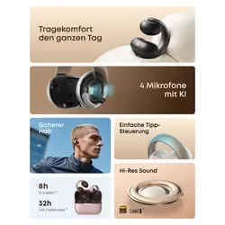 Komfort den ganzen Tag: Die soundcore AeroClip Open-Ear Clip-On Earbuds überzeugen durch ein bequemes Design, mit dem du stundenlang ohne Druckgefühl deine Lieblingsmusik hören kannst.