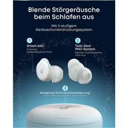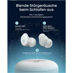 Noise Cancelling Kopfhörer für ruhige Nächte: Die Sleep A30 kombinieren Smart ANC für den Schlaf, adaptive Schnarchmaskierung und passive Geräuschunterdrückung, um störende Tieftöne um bis zu 30dB zu reduzieren. Optimal auf deine Schlafbedürfnisse abgestimmt.